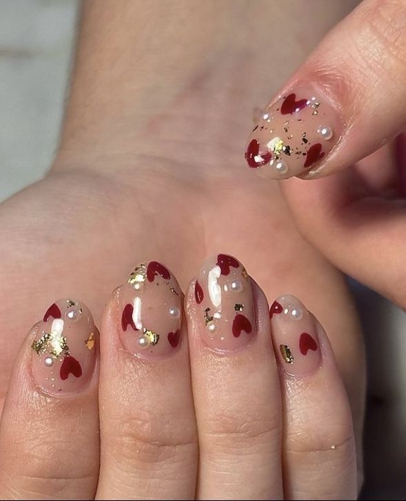 Tomando en base el tamaño de tu uña aplicamos gel lechoso/transparentoso del color de tu preferencia y encapsulamos elementos que sean de tu agrado o pedrería.